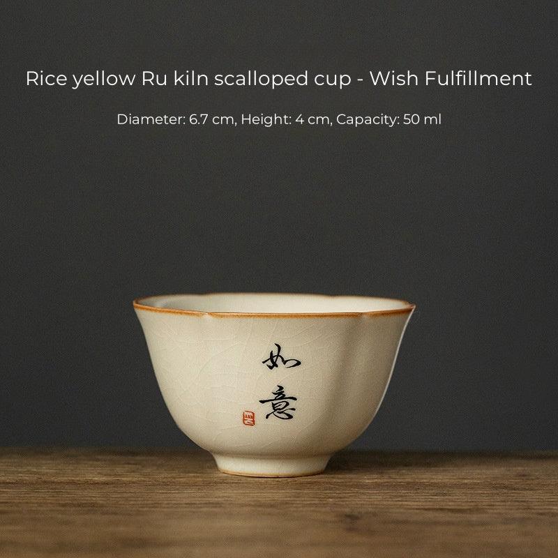 Style: Rice yellow Ru kiln scalloped cup - Joy