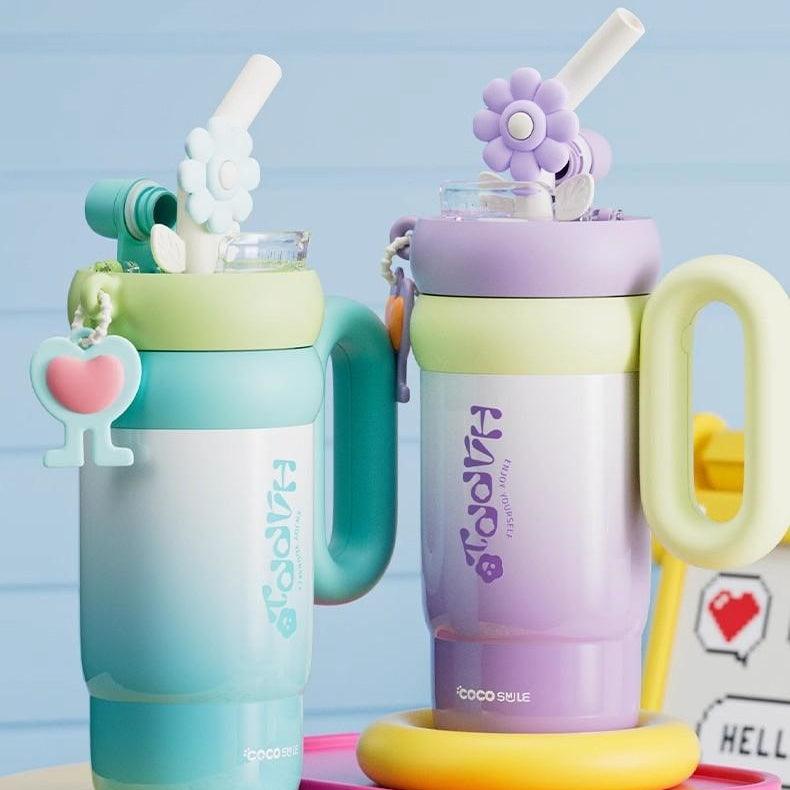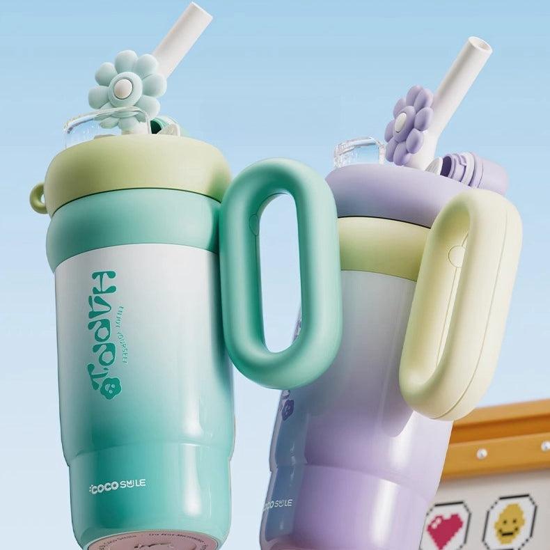 The Coco Smile Rotating Flower Thermos Cup offers a fun and practical way to stay hydrated throughout the day. With a large 760ml capacity, this cup is ideal for both home and travel use, keeping drinks at the desired temperature for extended periods. Its unique design features a rotatable flower decoration on the straw, providing an interactive experience while enjoying your favorite beverages.