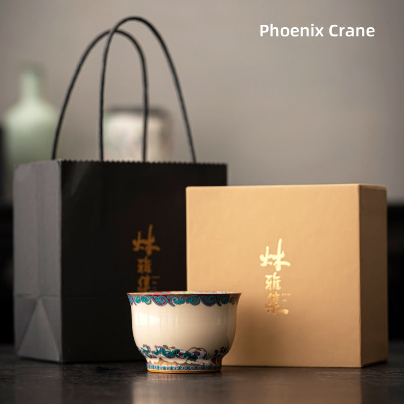 This teacup comes packaged in an elegant gift box, making it a thoughtful gift for those who appreciate fine design and the beauty of traditional Chinese motifs.