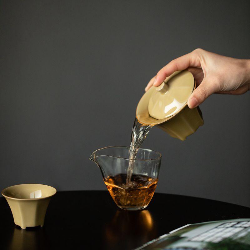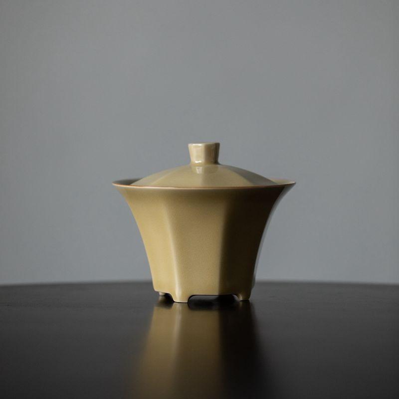 This beautifully crafted eight-sided lidded bowl is made from imitation Ding Kiln yellow porcelain, capturing the essence and elegance of traditional Ding ware with modern precision. Its unique geometric design makes it both a functional piece for tea enthusiasts and a striking decorative item for collectors.