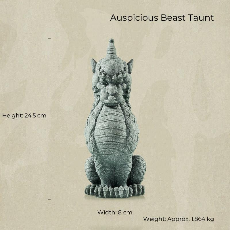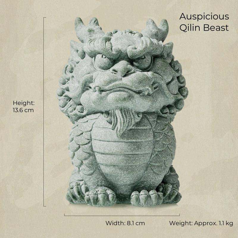The Kirin Auspicious Beast Tea Pet, crafted from fine green sand rock, represents prosperity and good fortune in traditional Chinese culture. This detailed hand-sculpted figurine serves as a decorative piece for your tea table, embodying elegance and craftsmanship. The Kirin is a revered symbol of benevolence and longevity, making it a meaningful addition to any tea setting.