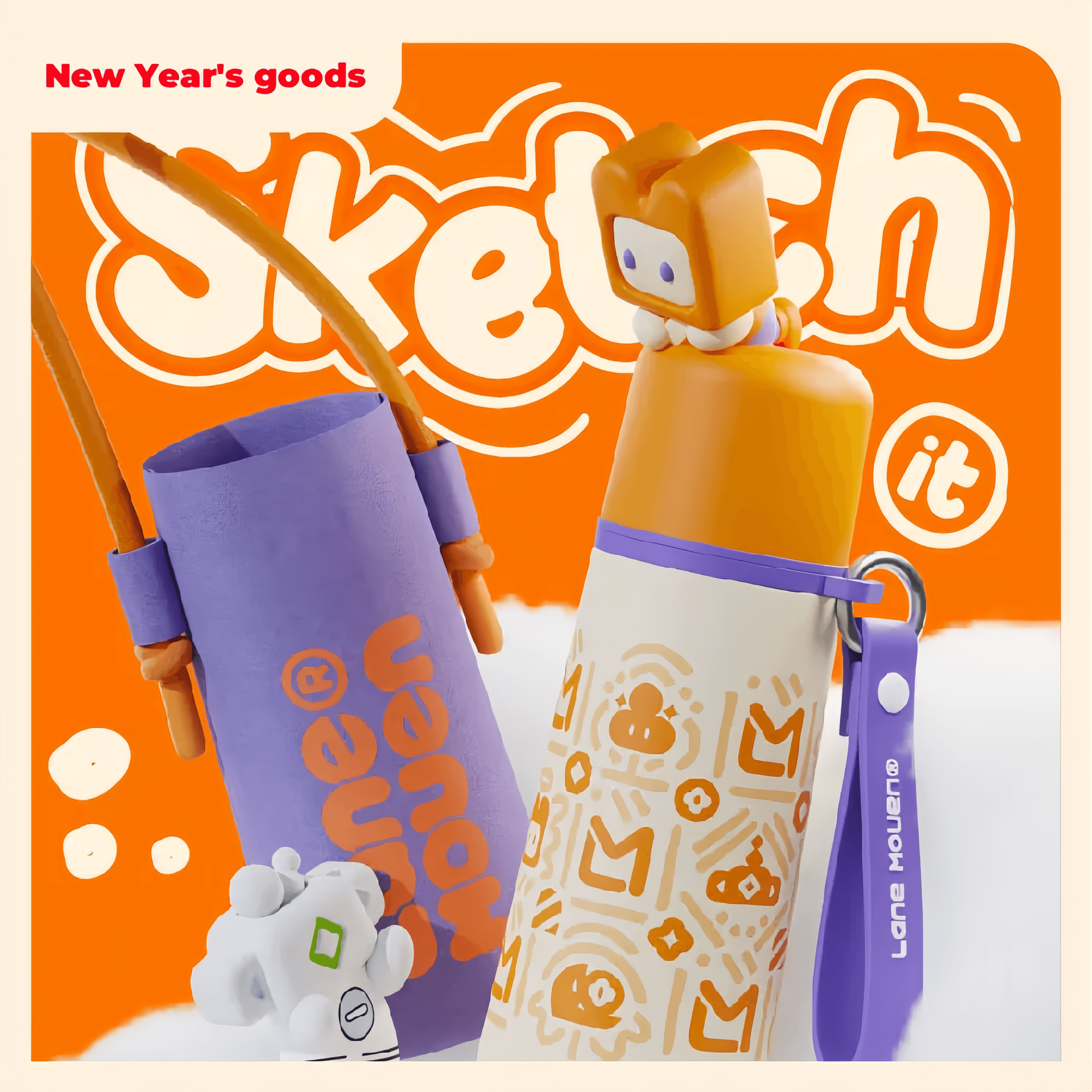 School Season Preferred Lane Mouen Children's Vacuum Flask Cute Drinking Cup 316 Stainless Steel Large-capacity Hand-painted Cup.