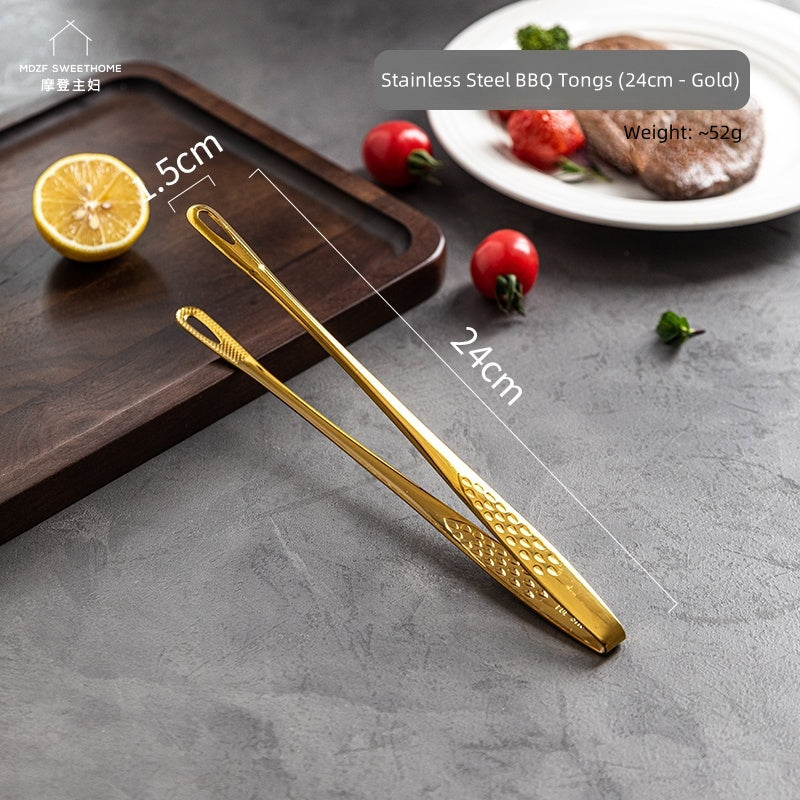 The mirror-polished finish and smooth edges offer a sleek, hygienic surface that’s easy to clean, while the ergonomic handle (available in silver or gold) combines comfort and style. Perfect for indoor cooking, outdoor barbecues, or serving dishes, these multi-purpose tongs are a must-have for every kitchen.