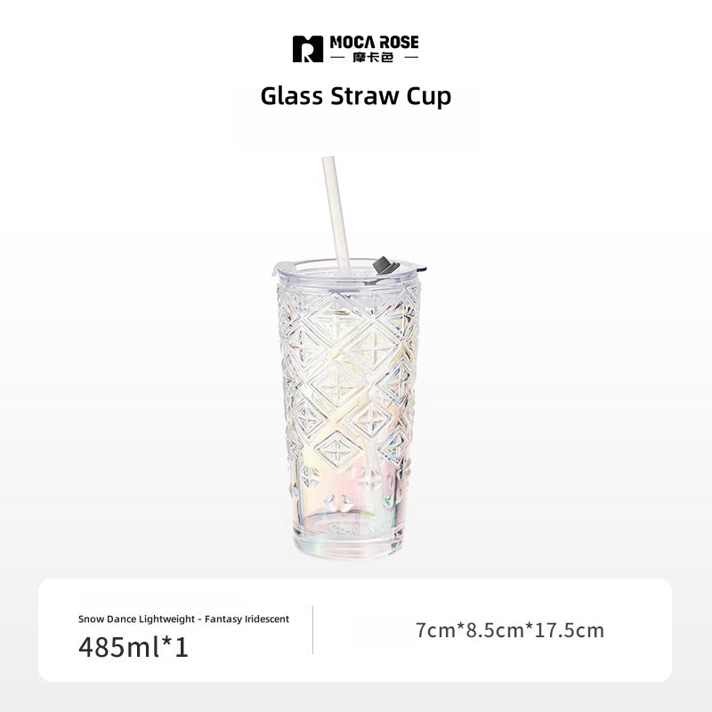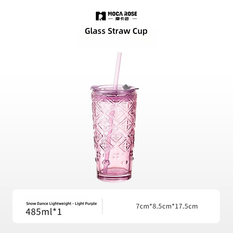 MOCA ROSE 485ml Glass Tumbler with Straw | Stylish and Durable for Everyday Use