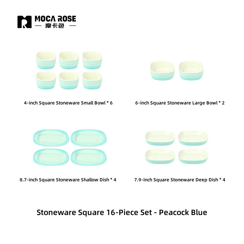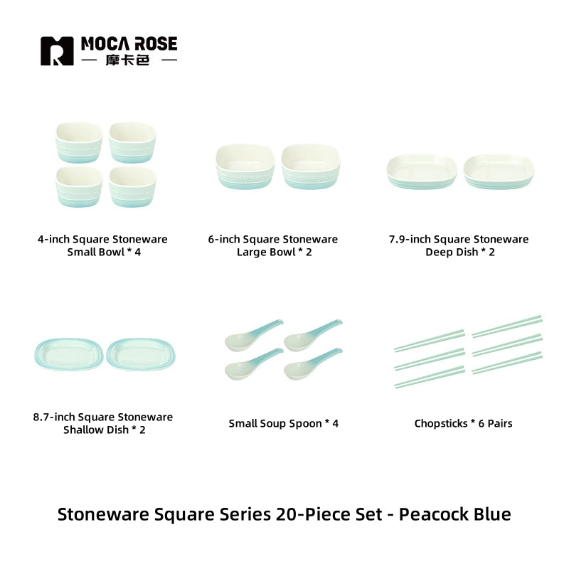 MOCAROSE Square Flame Porcelain Dinnerware Set - Oven-Safe Mocha & Peacock Teal