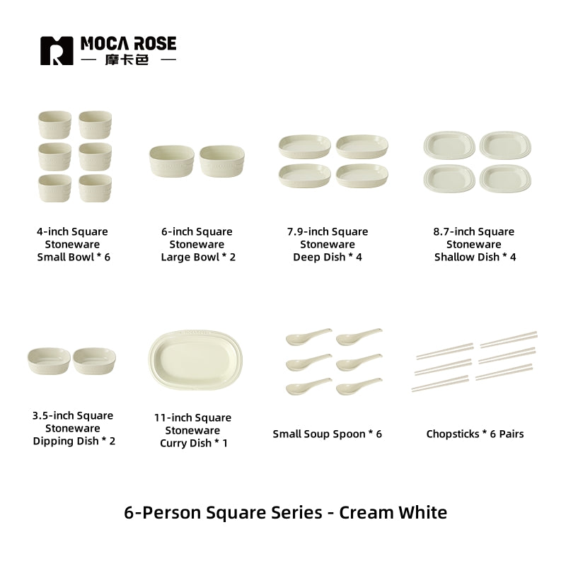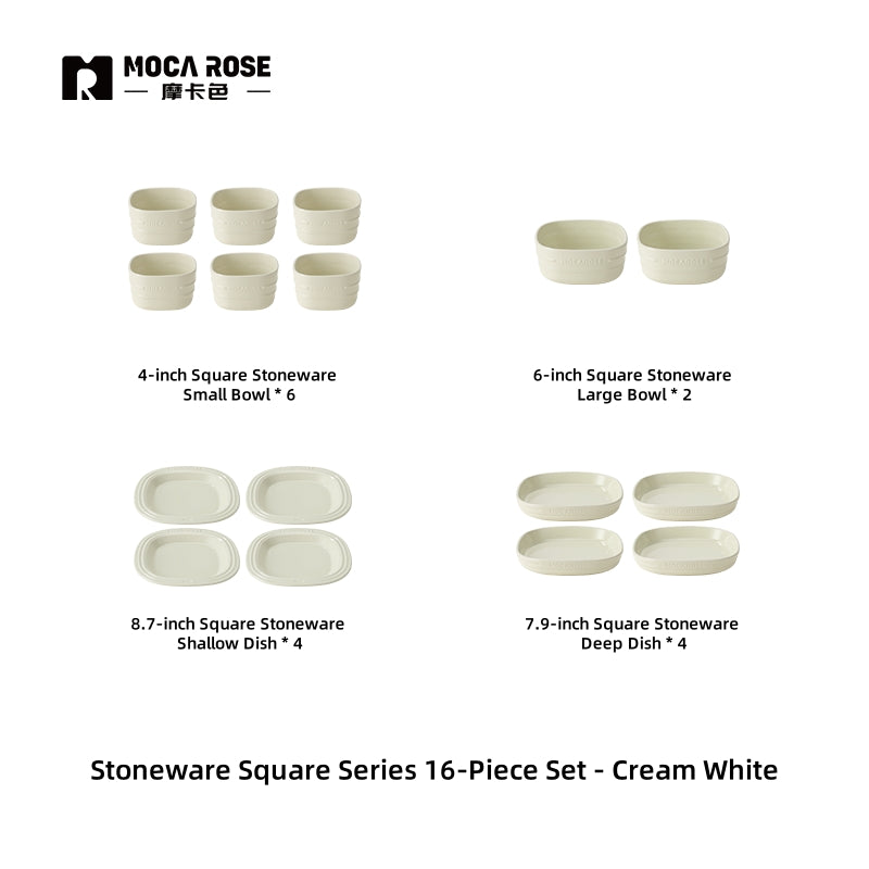 MOCAROSE Square Stoneware Dinnerware Cream White