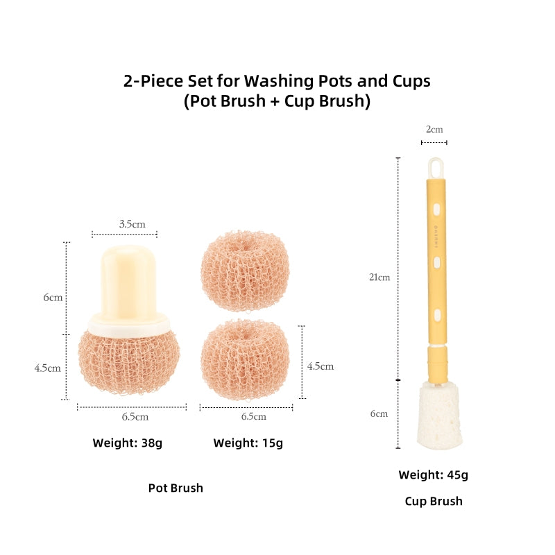The ergonomic PP handle (6.5cm length, 38g lightweight) ensures a comfortable grip, while the innovative snap-in design keeps the fiber ball securely attached during scrubbing. When worn, simply replace the brush head – each purchase includes 2 free refills! Ideal for pots, pans, cups, and dishes, it outperforms traditional steel wool (scratches surfaces) and PET brushes (prone to breakage and formaldehyde risks).