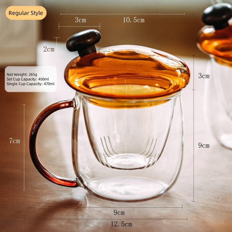 Introducing the SHUEHO Mushroom Lid Glass Teacup, a fusion of whimsical design and premium functionality. Crafted from high borosilicate glass, this teacup withstands extreme temperatures (-20°C to 400°C) and 120°C instant thermal shock, making it ideal for boiling water, iced beverages, or dishwasher use (lid excluded). The innovative mushroom-shaped lid doubles as a tea tray, while the integrated glass infuser ensures quick filtration and a seamless tea-drinking experience.
