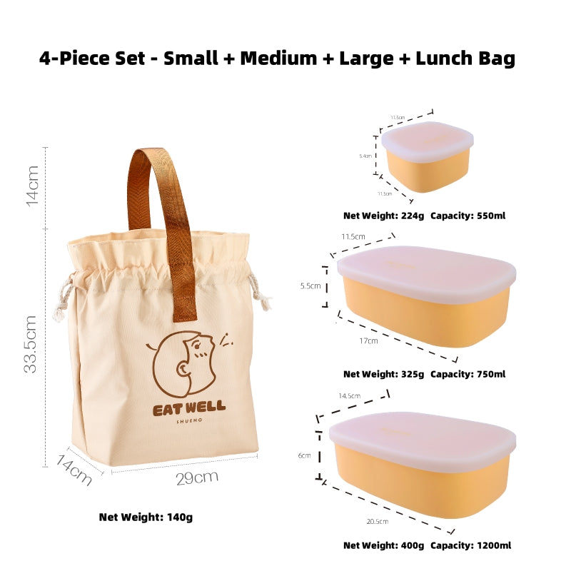 SHUEHO Silicone Bento Box - Leakproof, Microwave & Freezer Safe (-40°C~230°C), 3 Sizes (550ml/750ml/1200ml)