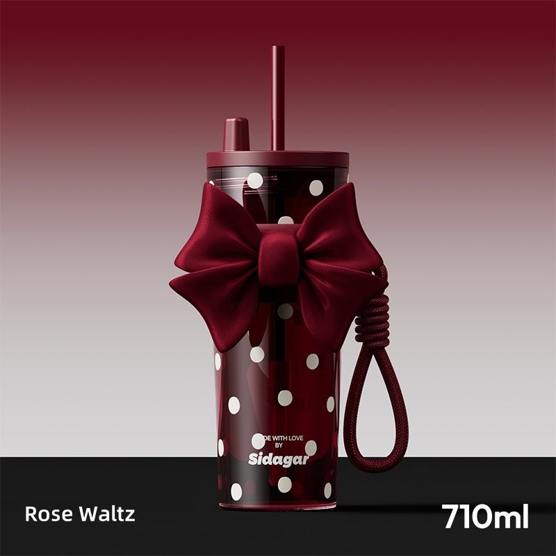 Sidagar Butterfly Dream Insulated Straw Tumbler - 710ml BPA-Free Tritan Cup with Elegant Bow Design