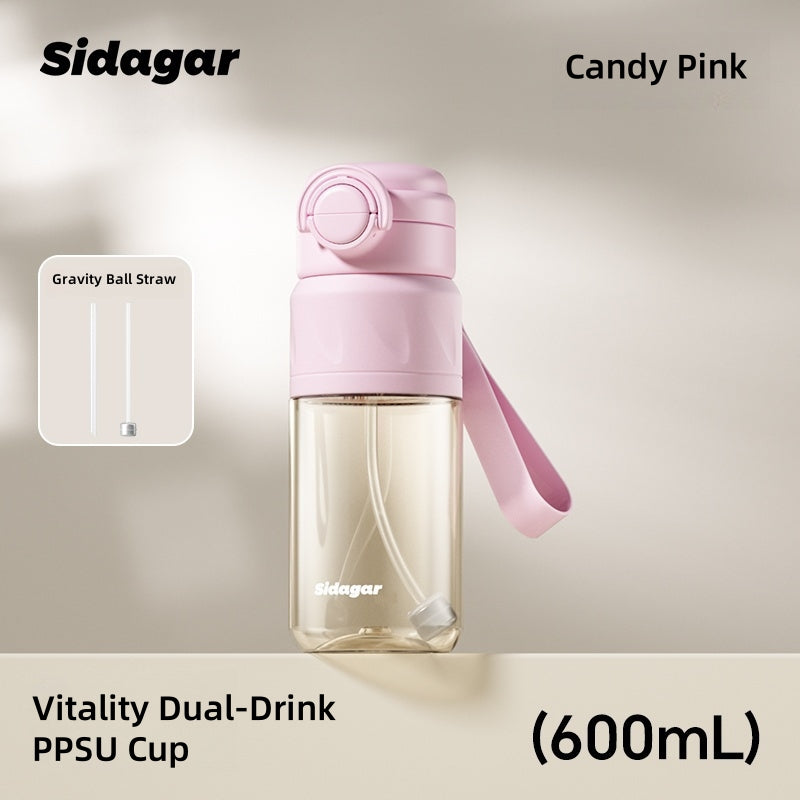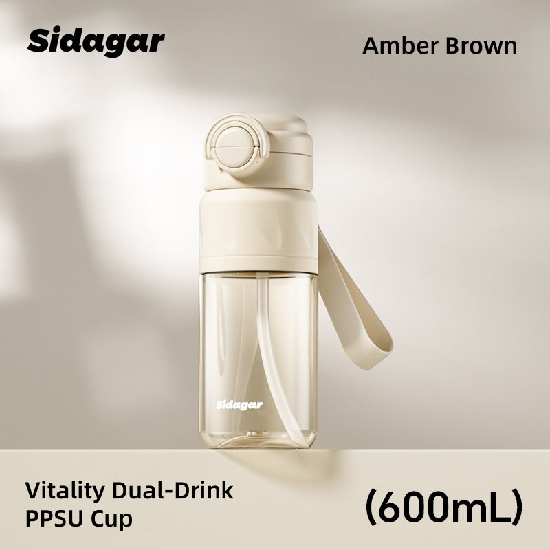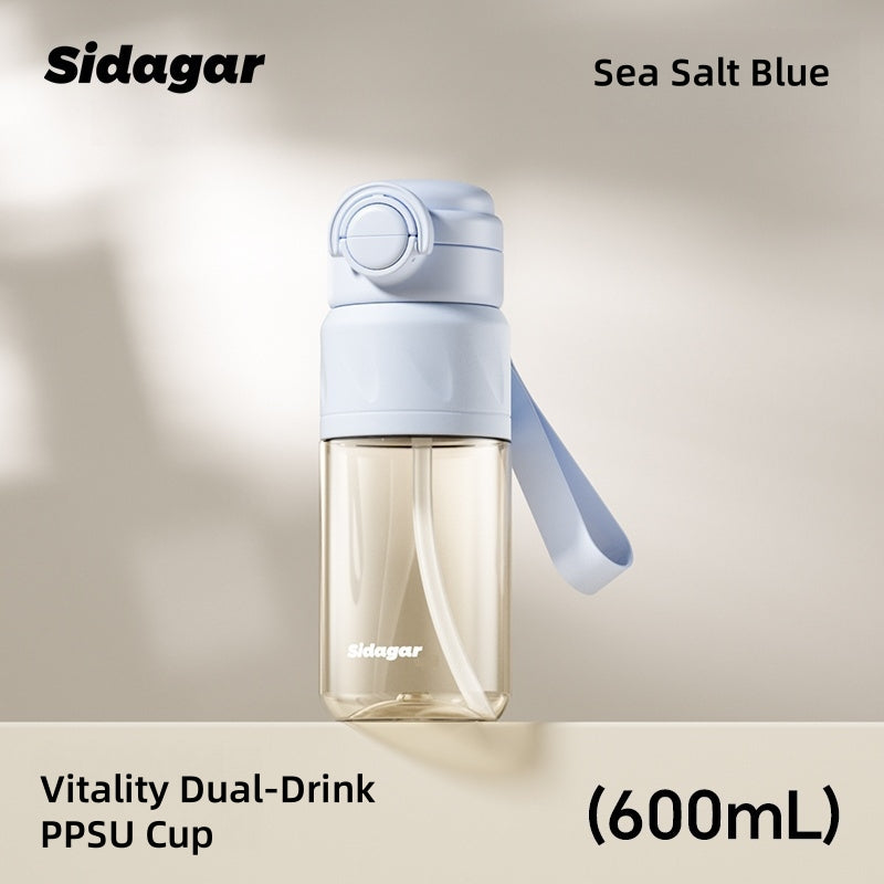 Sidagar Dual-Drink PPSU Water Bottle for Maternity - 600mL BPA-Free, Heat-Resistant, Anti-Spill with Gravity Straw & Dual Modes