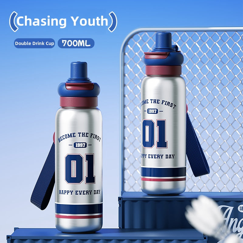 700ml stainless steel vacuum-insulated bottle with straw and direct-drink spout.