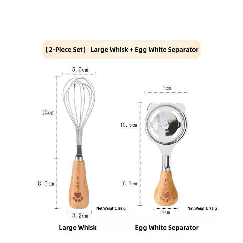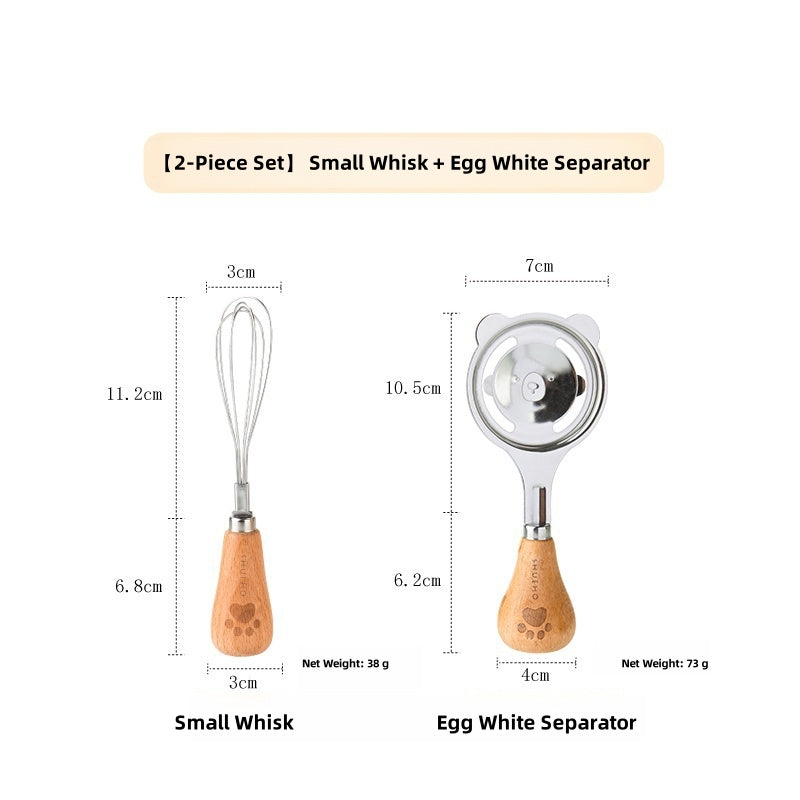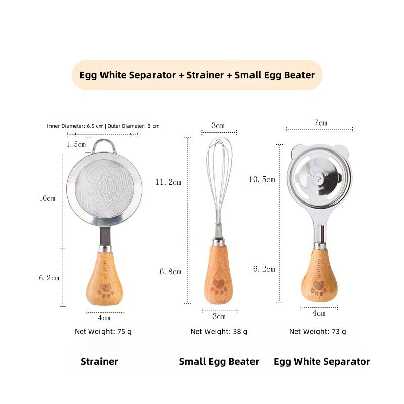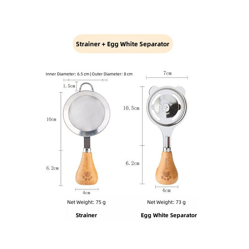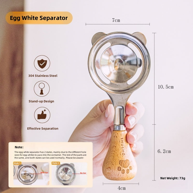 Introducing the SHUEHO Bear Design Egg Yolk Separator, a charming and functional addition to your kitchen! Designed with a patented bear-inspired silhouette, this separator features adorable ears, a concave "bear face" center to securely cradle yolks, and claw-shaped pores for fast, clean egg white separation. Crafted from food-grade 304 stainless steel and natural beech wood, it ensures safety and durability. The ergonomic wooden handle offers a comfortable grip and stands upright for hygienic storage. Perfect for baking enthusiasts and families, this tool includes a bear-ear hook to rest securely on bowls, freeing your hands during use, blending playful design with professional performance.