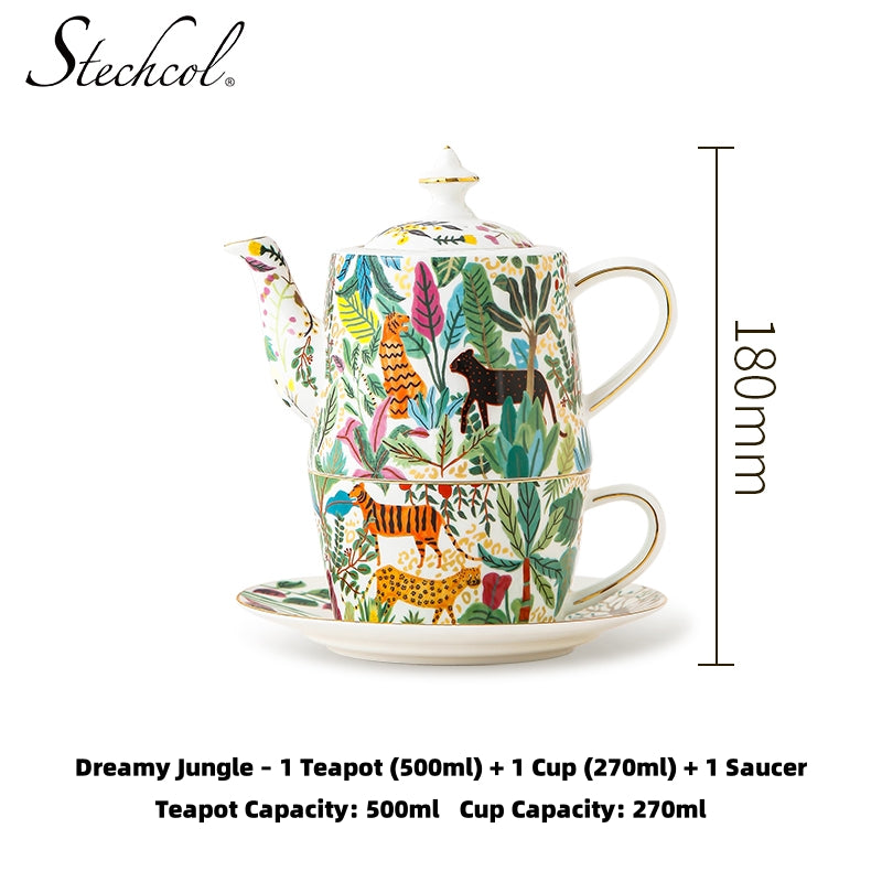 Embrace nature’s elegance with Stechcol’s "Dream Forest" Fine Bone China Teapot Set. Meticulously crafted in China, this 500ml teapot and 270ml cup duo features vibrant, lifelike bird motifs dancing amidst lush foliage – a tribute to woodland enchantment. Made from premium bone china famed for its "paper-thin lightness, mirror-like translucency, jade-like whiteness, and chime-like resonance," each piece is edged in luxurious 24K gold, reflecting artisanal mastery through multi-step hand-gilding.