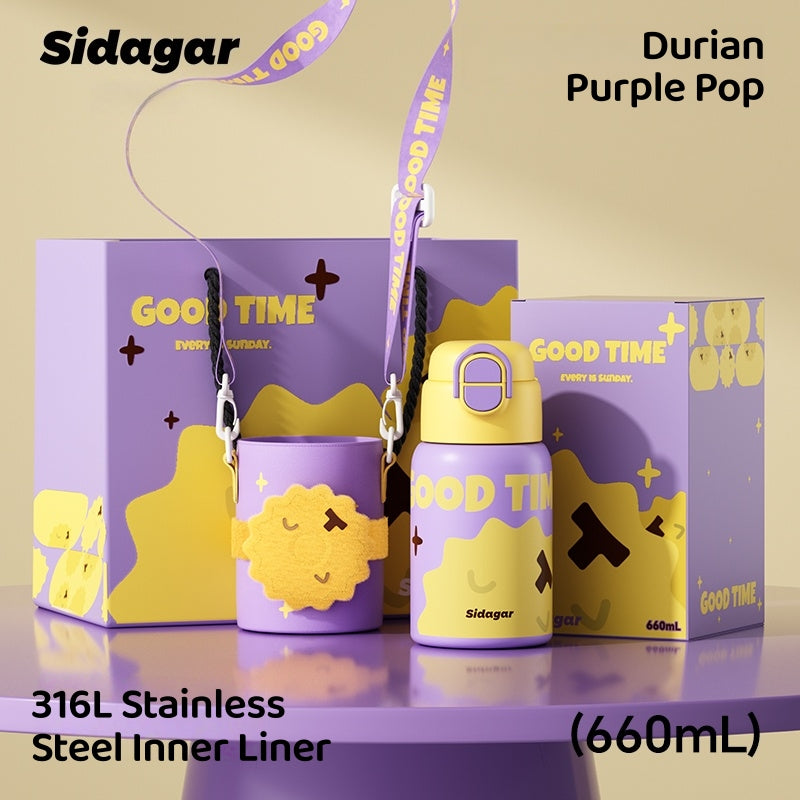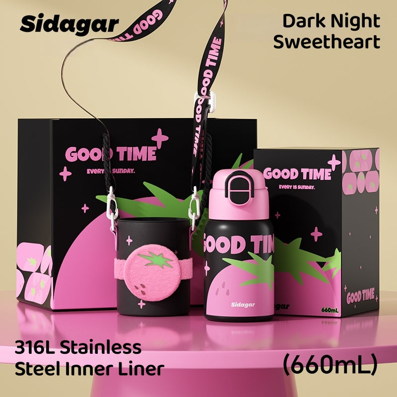 Sidagar 3-in-1 Leakproof Insulated Stainless Steel Water Bottle with Straw – 660ml Cute Thermos Flask with Carry Strap, 316L Interior, 3 Drinking Modes (Purple, Black, Green, Blue)