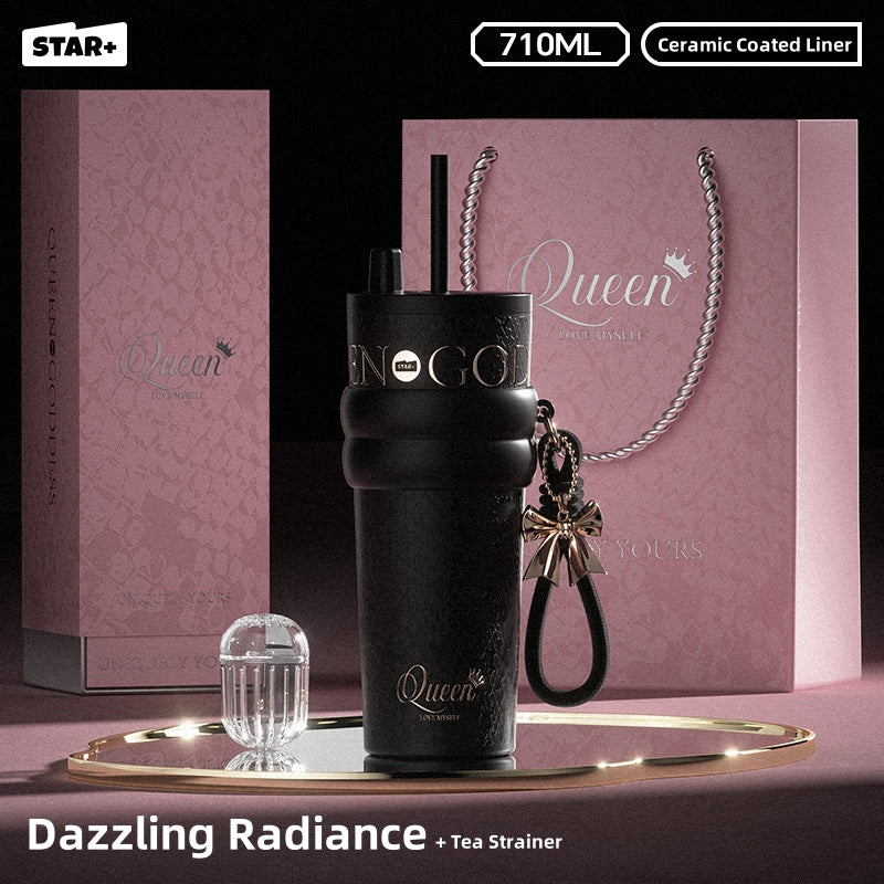Crafted with 316L stainless steel on the interior, the STAR+ Aurora Starry Night Bottle ensures your drinks stay at the perfect temperature longer. Its multi-layered insulation technology and ceramic glaze interior help keep water cool, while also providing an extra layer of health protection. The bottle comes with a convenient foldable straw for easy sipping and on-the-go use, making it a versatile addition to your lifestyle.