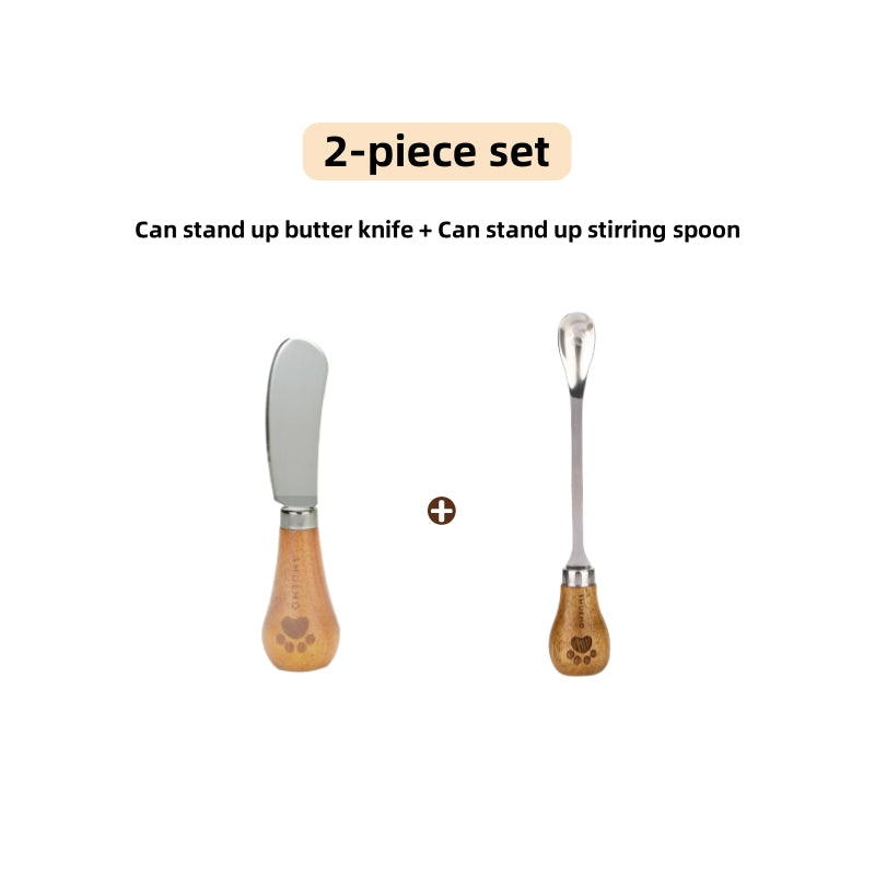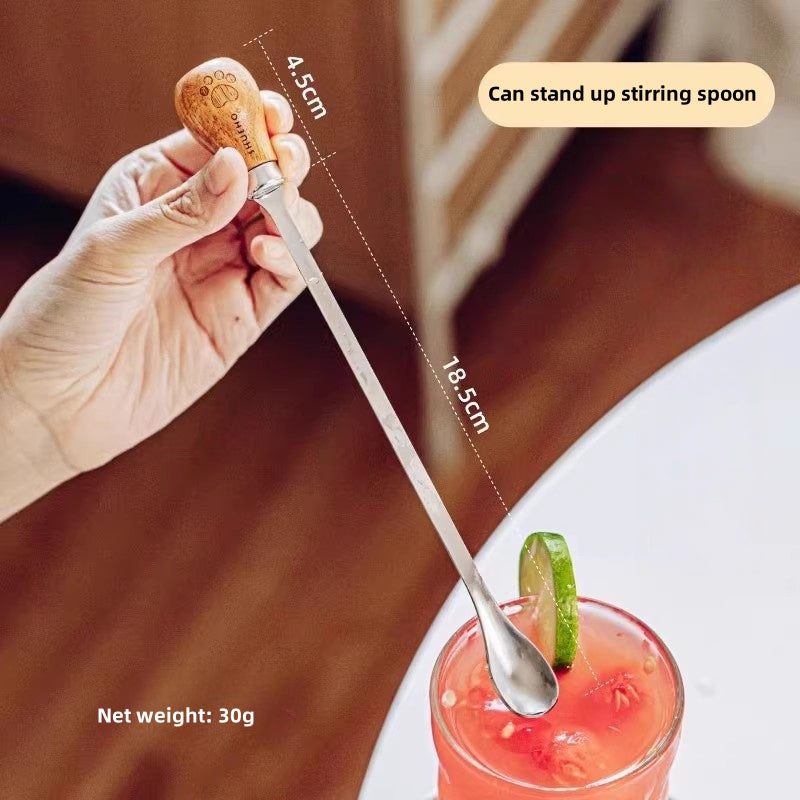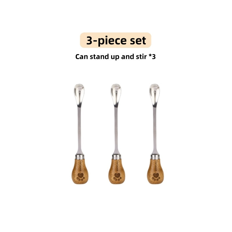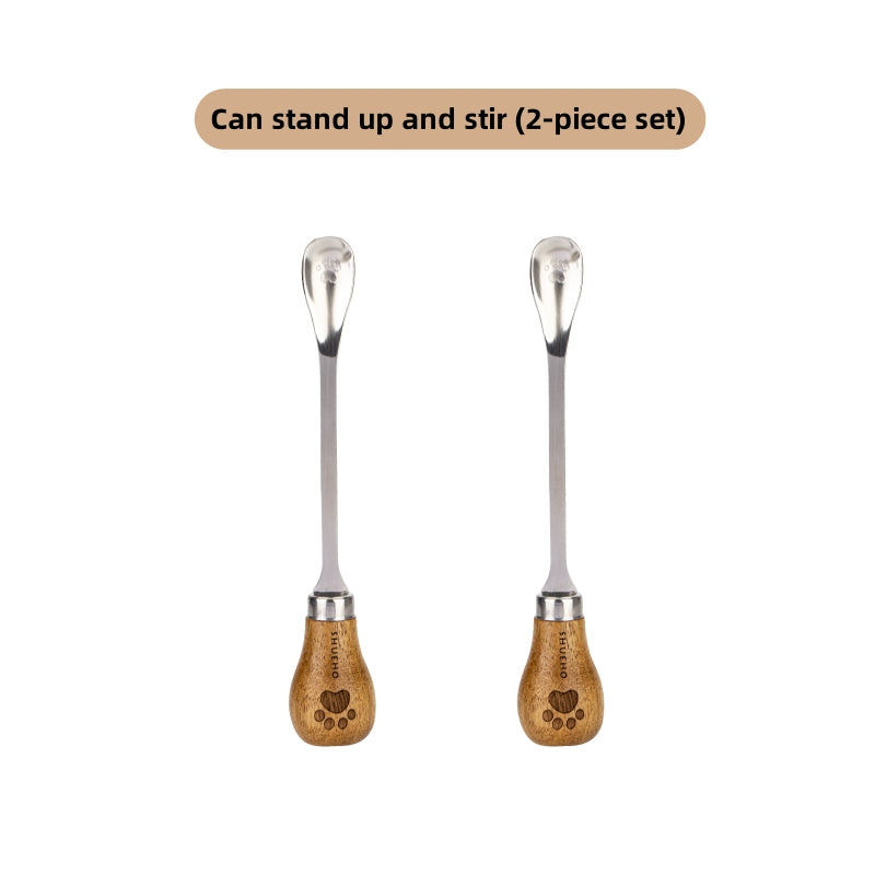 Kexiaobear Standable Mixing Spoon - Stainless Steel with Wooden Handle, Bear Claw Design, Safe for Kids & Cooking