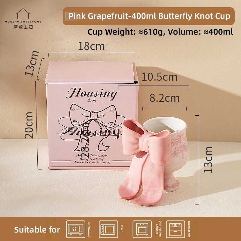 Embrace elegance and daily romance with our Princess Escape Series Mug. This exquisite ceramic cup features a delicate, three-dimensional bow gracefully adorning its body, capturing a dreamy aesthetic perfect for adding a touch of sophistication to your morning coffee or afternoon tea. Crafted with high-quality ceramic and safe, vibrant underglaze painting technique, this mug ensures no harmful substances are released, making it both food-safe and durable for long-lasting use. The set includes a matching relief spoon, enhancing your drinking experience and adding to the sense of ceremony. Its stable base and comfortable handle provide a secure and elegant grip. Ideal as a birthday gift, best friend pair cups, or a charming addition to your home decor, this mug is not only functional but also a piece of art that brings poetic romance and visual enjoyment to your daily rituals. Share the beauty of thoughtful moments and indulge in a luxurious experience with every sip.