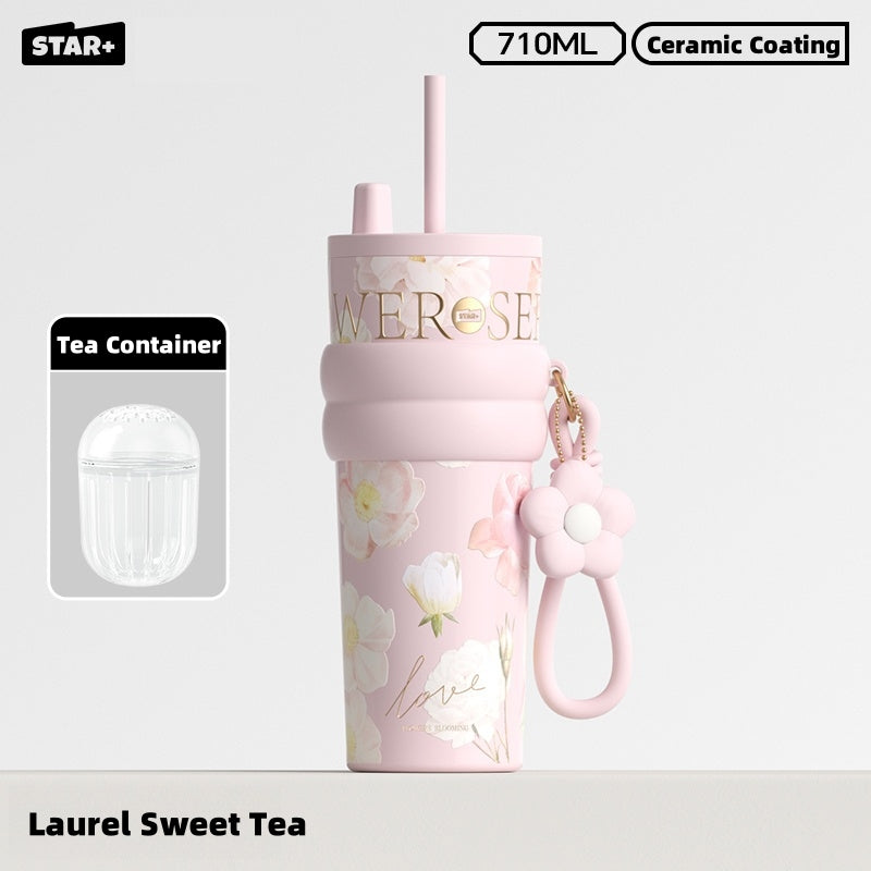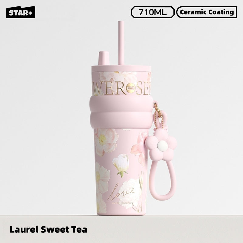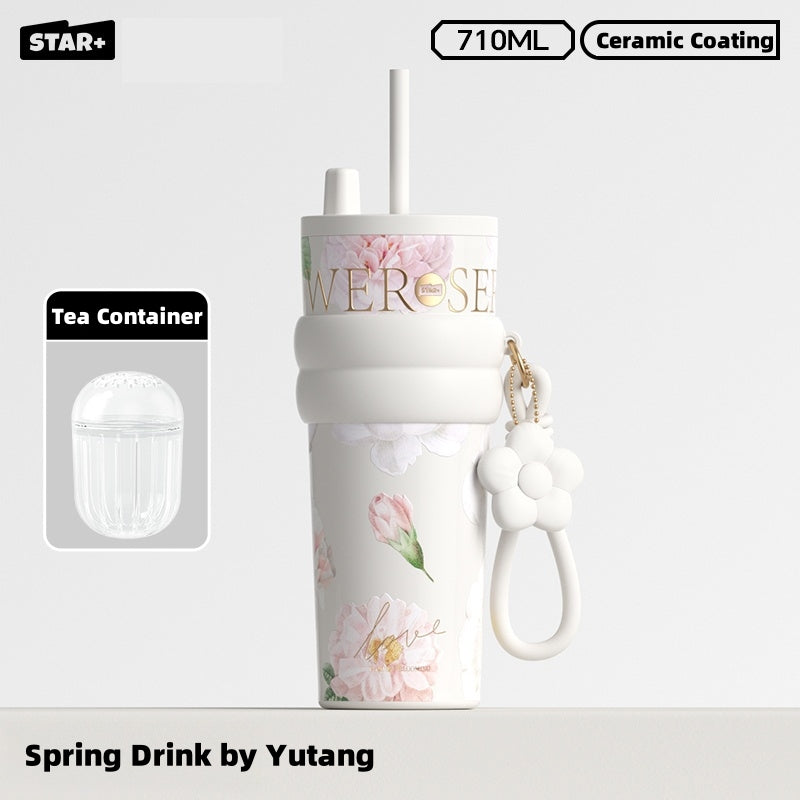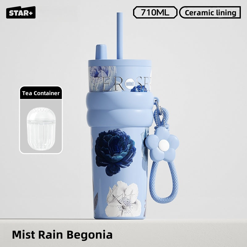 Choose between two convenient drinking styles: wide-mouth sipping or straw for versatility. The leakproof and anti-slip silicone base make it ideal for travel, gym, or daily commutes. Stylishly available in Rainy Spring, Sweet Osmanthus, and Moonlit Camellia hues, it complements any outfit or mood.