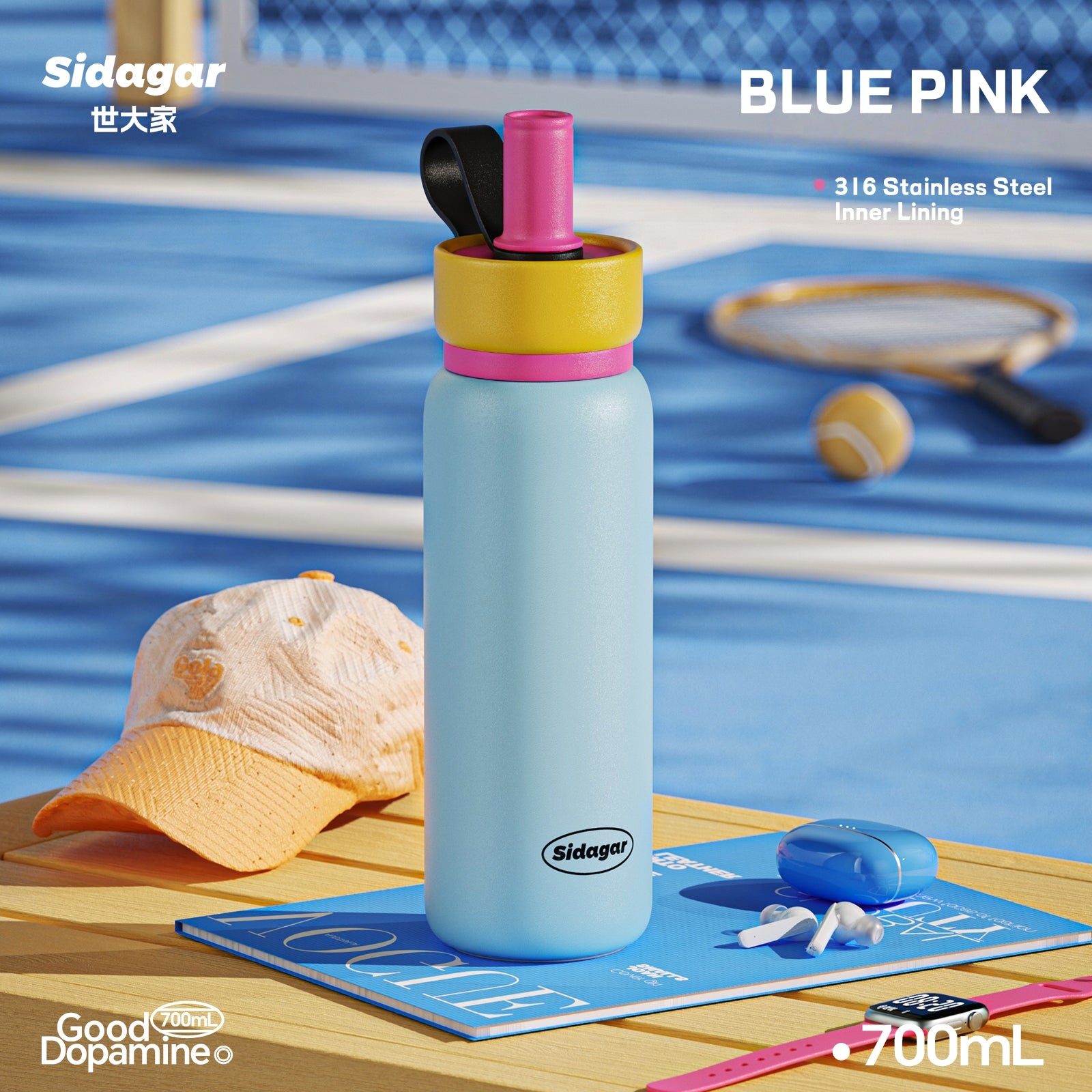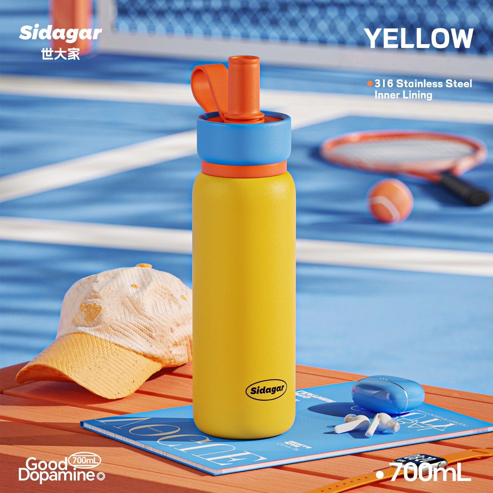 Sidagar Light Chaser Cup 700ml - Insulated Stainless Steel Vacuum Flask, Leakproof Travel Thermos for Coffee & Cold Drinks